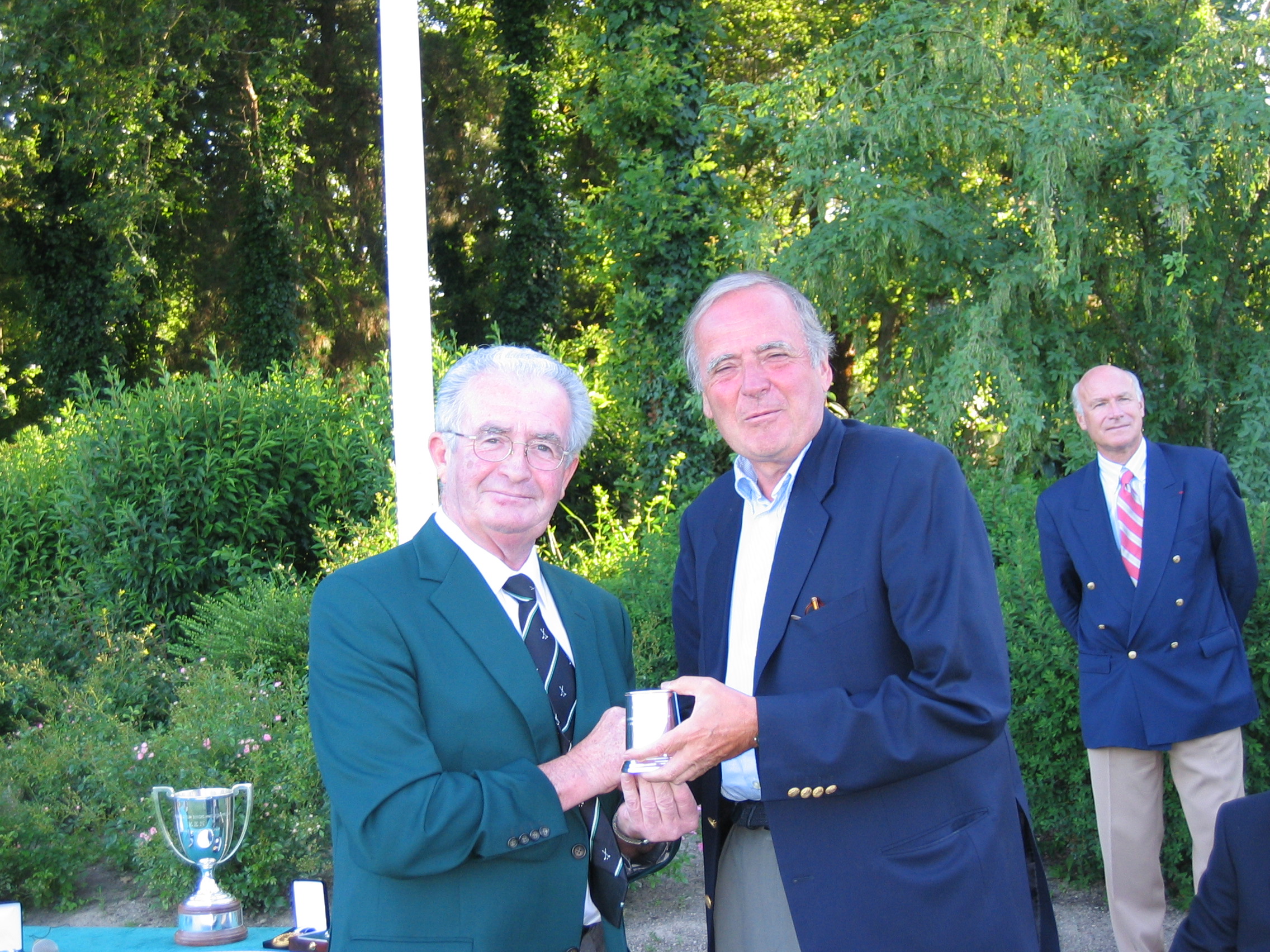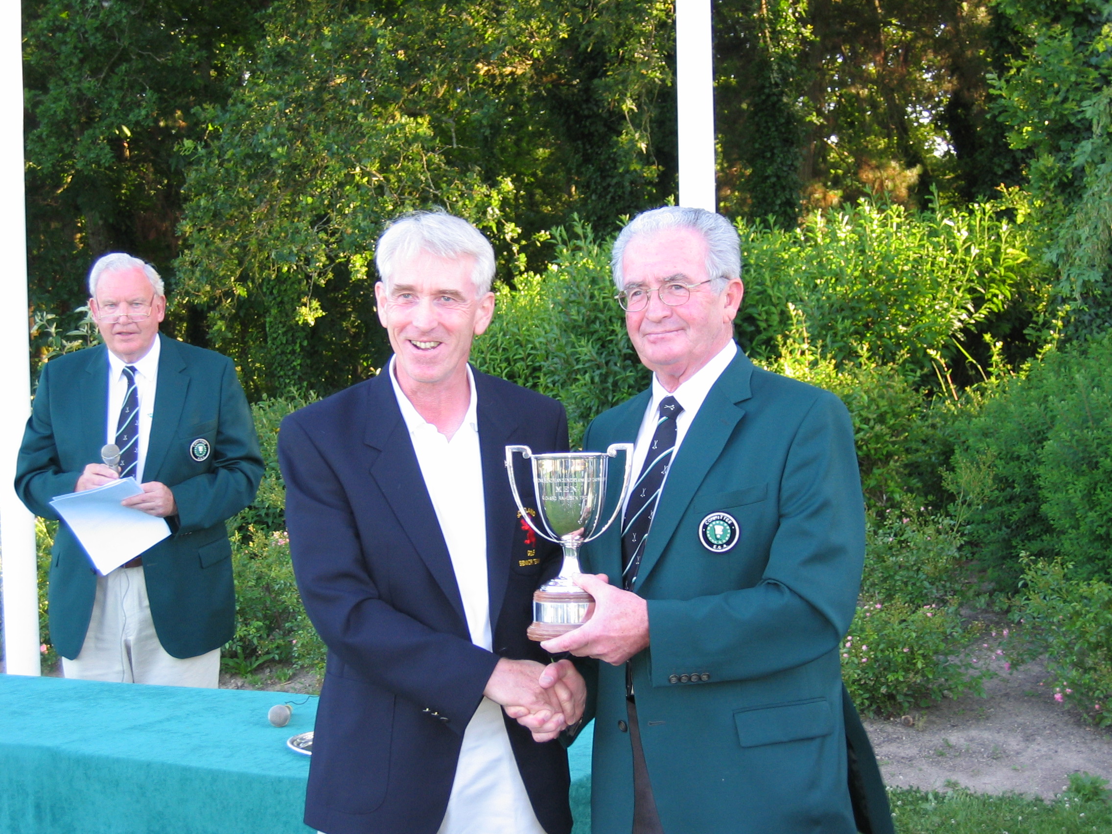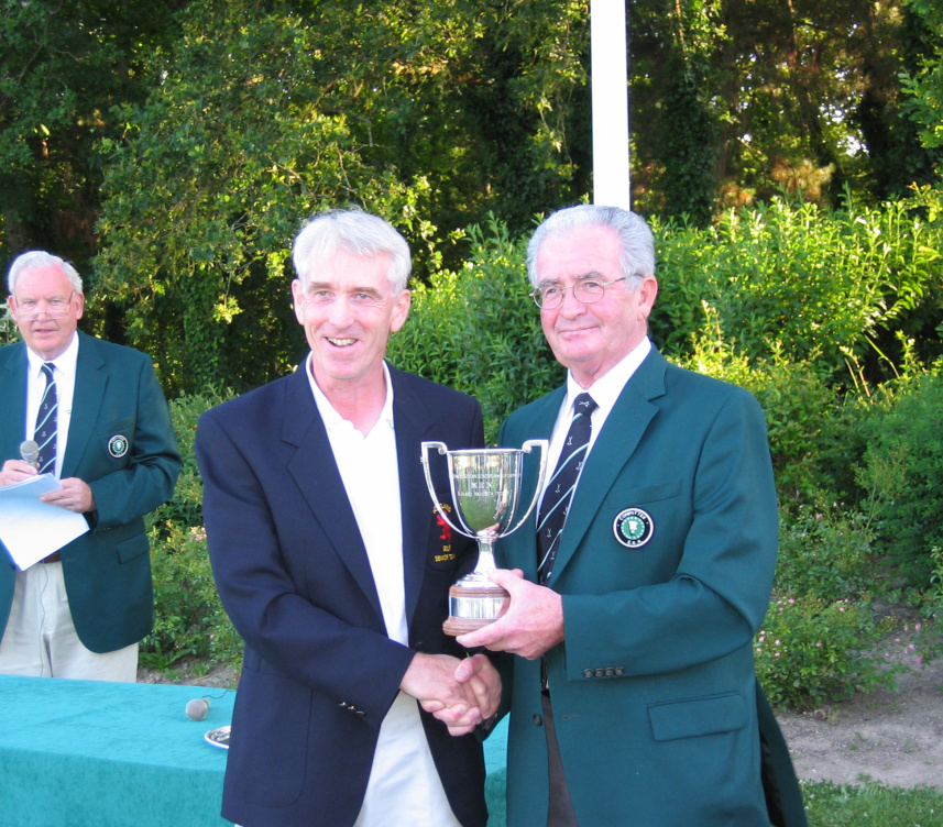 Gerard G. O'Brien, EGA Championship Committee and Jack Lynch, EGA Executive Committee handing over the Trophy to winner, David J. Smith