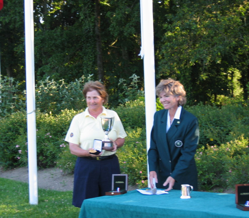 Anne Lanrezac, EGA Executive Committee, handing over Trophy to the winner, Maj-Britt Heden