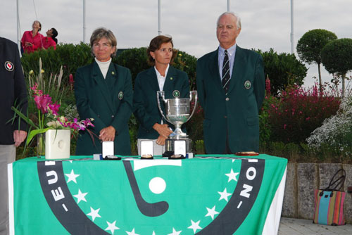 EGA officials on duty, from left to right: Anne Lanrezac, Chairman EGA Championship Committee, Macarena Campomanes, EGA Championship Committee, Dieter Usner, EGA Executive Committee.