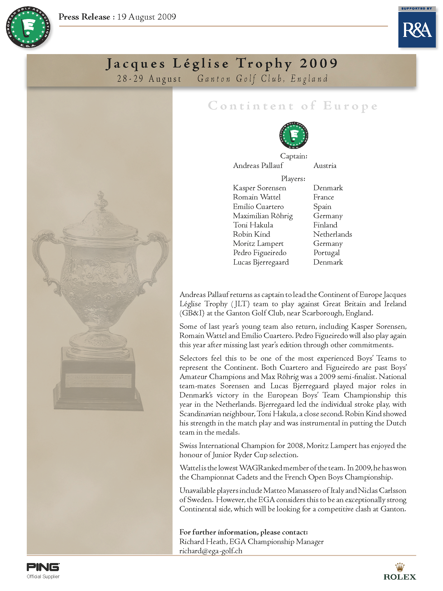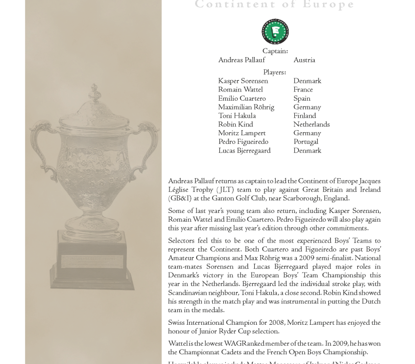 2009 Jacques Léglise Trophy - Team Selection