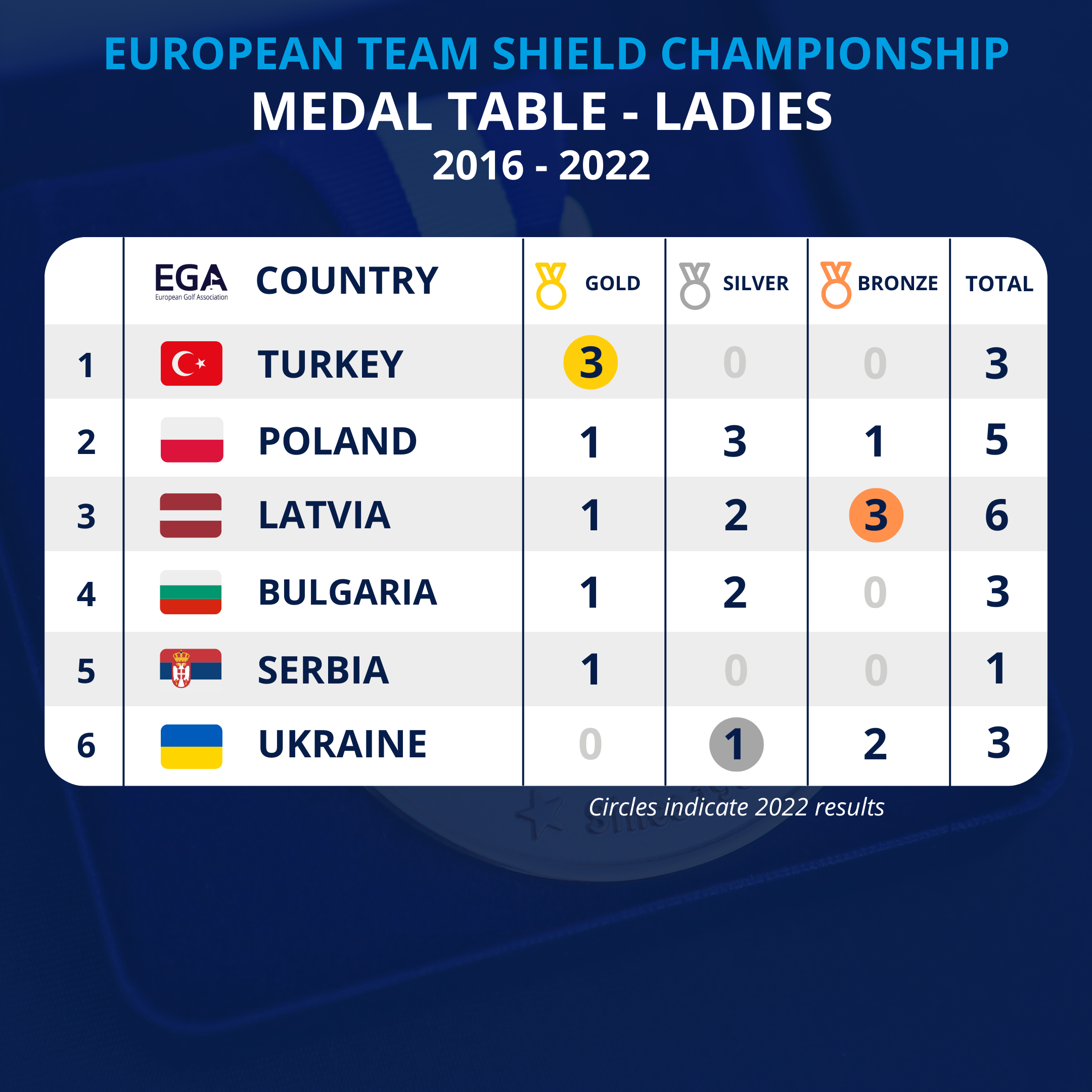 In the European Ladies' Team Shield Championship, Turkey also extended their advantage at the top of the medal table, having now won the event three times since the event was introduced in 2016.