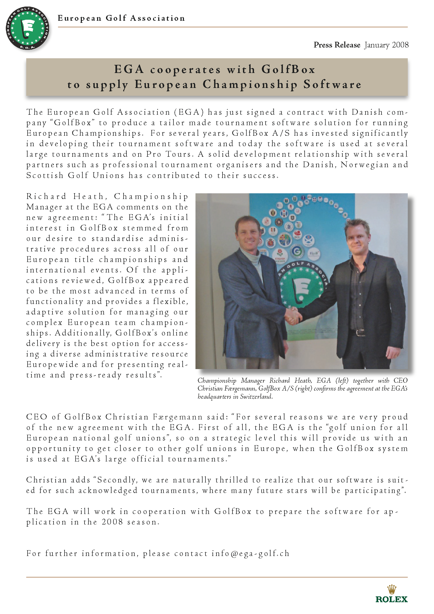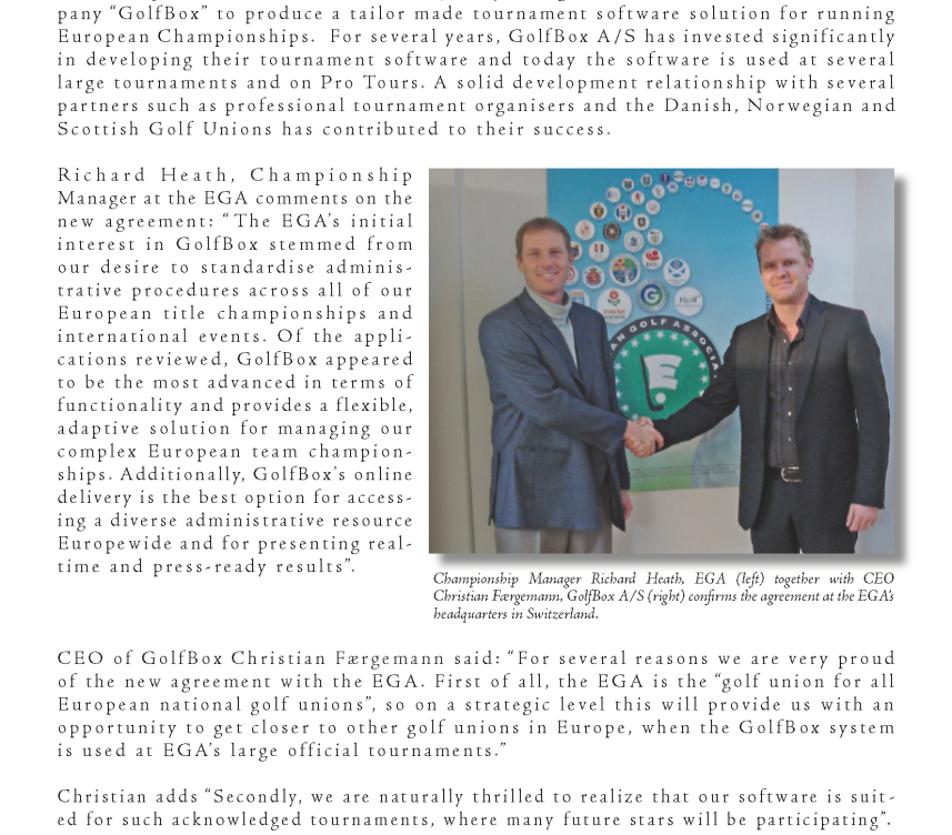 Golfbox - EGA Press Release